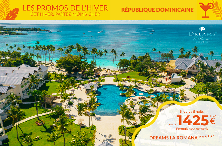 Tahiti & ses îles dans le Pacifique. La Guadeloupe, Martinique, République Dominicaine, Sainte Lucie, St Martin et St Barth, Cancun & La Riviera Maya dans les Caraïbes. L’Ile Maurice, la Réunion, les Seychelles, les Maldives et le Sri Lanka dans l’Océan Indien sans oublier une halte à Dubaï.
