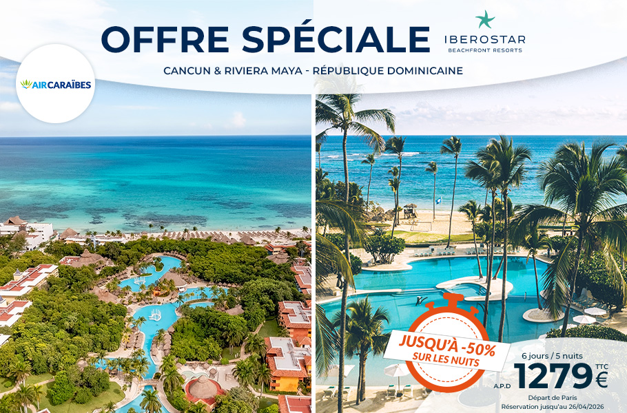 Tahiti & ses îles dans le Pacifique. La Guadeloupe, Martinique, République Dominicaine, Sainte Lucie, St Martin et St Barth, Cancun & La Riviera Maya dans les Caraïbes. L’Ile Maurice, la Réunion, les Seychelles, les Maldives et le Sri Lanka dans l’Océan Indien sans oublier une halte à Dubaï.