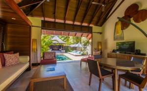 Les villas à trois chambres sont agencées de façon spacieuse et décorées avec élégance. La chambre principale dispose d’une salle de bains attenante et les deux autres chambres, à l'étage, se partagent une salle de bain. Une piscine privée ainsi qu’un kiosque extérieur sont situés dans la cour de la villa.
