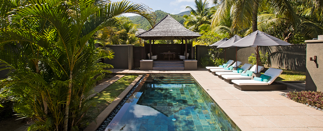Capacité 4 adultes + 2 enfants (-13 ans – 1 dans chaque chambre) + 1 bébé (de moins de 2 ans). Situées sur la plage nord de Port Launay, ces villas de 2 chambres offrent le nec plus ultra en matière d’hébergement. Chacune est agencée de façon spacieuse et décorée avec élégance avec de vastes salles de bains particulières, piscine privée, une pergola pour la relaxation et les apéritifs.