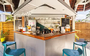 Il surplombe la piscine et la plage de Mont Choisy, idéal pour un verre entre amis ou un apéritif avant le dîner et déguster une sélection de boissons et de cocktails.