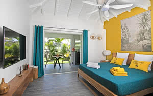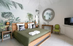 L'ambiance est apaisante et rappelle l'océan avec des touches de bleu. Les lodges sont également décorés avec des matériaux nobles et une inspiration jungle et tropicale pour une atmosphère relaxante.