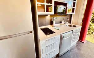 Les cuisines s'ouvrent sur les jardins par une loggia-terrasse. D’une superficie de 12 m2 à 14 m2, elles disposent d’un grand réfrigérateur-congélateur, de plaques de cuisson vitro-céramiques, d’un four à micro-ondes, et d’un lave-vaisselle.
