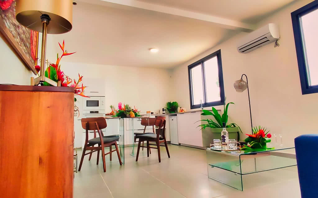 ELEGANCE EXOTIQUE (85 m2) : capacité 2 à 6 pax équipée de 2 chambres, 1 salle de bain, 1 séjour avec canapé lit, coin cuisine